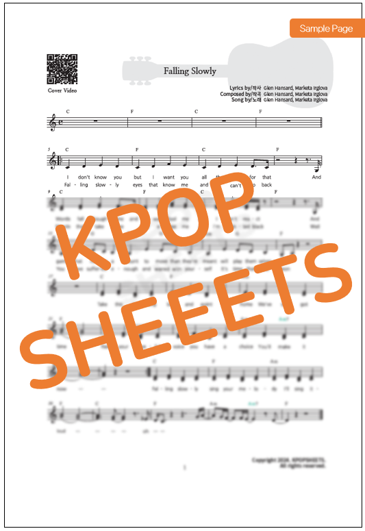 This is the guitar sheet music for the OST of Once, "Falling Slowly."